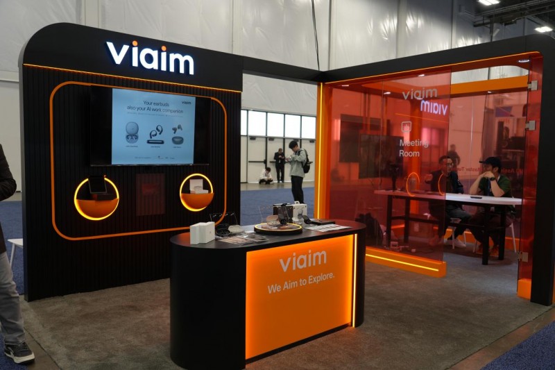 中国AI硬件明星企业「未来智能」也携旗下全球化品牌viaim再度参展,以“We aim to explore”为主题的展台,凭借科技感十足的设计与沉浸式场景体验,成为展会焦点。