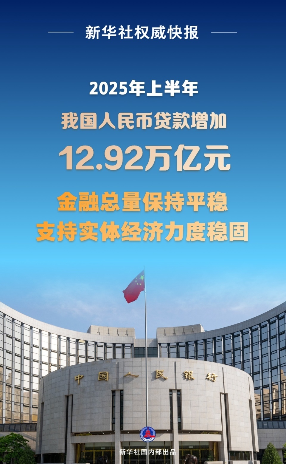 - 新华社权威快报|上半年我国人民币贷款增加12.92万亿元