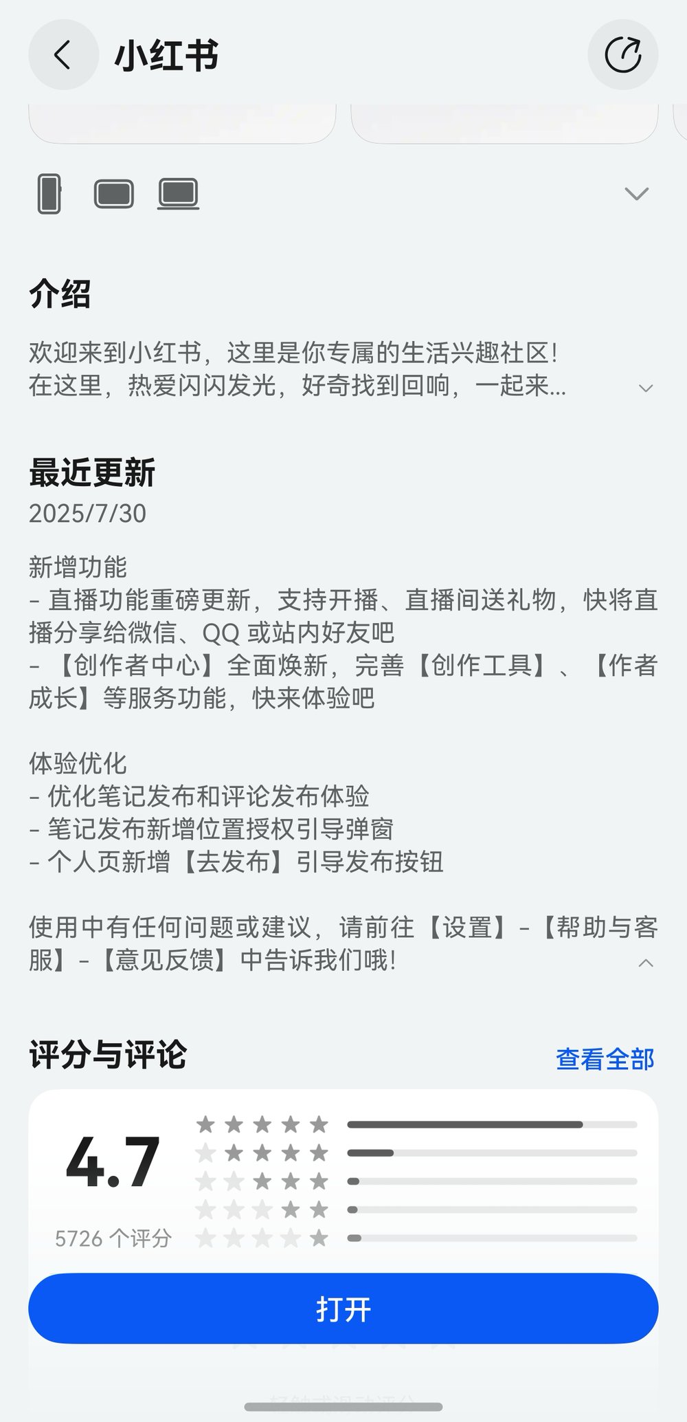 - 鸿蒙版小红书“一月四更”:新版支持直播开播,创作者中心再升级