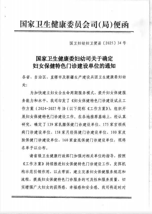 - 市妇幼保健院获批国家级盆底保健门诊建设单位